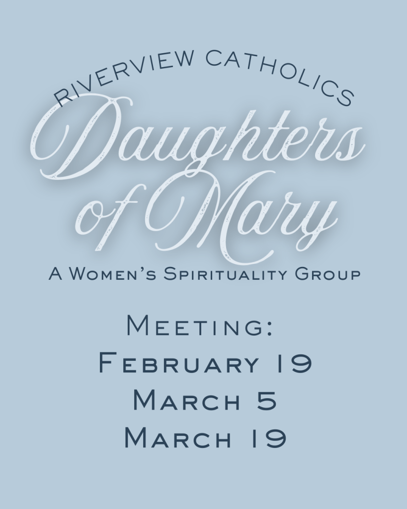Daughters of Mary, our women’s spirituality group meets the first and third Thursday of every month in the Christ the King Atrium at 7:00 pm. Join us this March on the 5th and 19th.