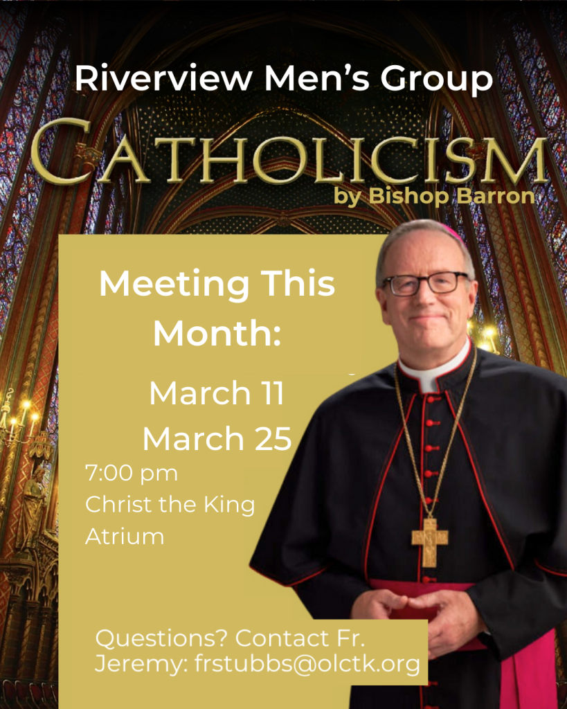Riverview Men’s Group meets every second and fourth Wednesday of the month in the Christ the King Atrium at 7:00 pm. Join us this March on the 11th and 25th.